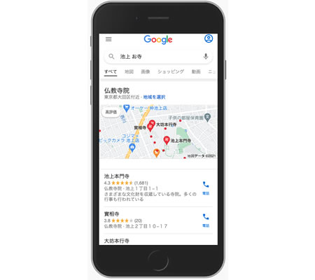 「地域名 + キーワード」など「地域名」と「キーワード」を組み合わせて行う検索を「ローカル検索」といいます。ローカル検索は簡単かつ便利なことから、地元のユーザーや旅行などで訪れたユーザーはローカル検索で近くのお店を見つけております。